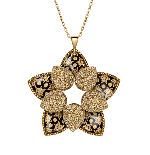 این آویز زیبایی، جذابیت و تمام ارکان اصلالت را همچون یک ستاره ،در شب تجلیل می کند و بر تعهد به الماس های تمام تراش بی نظیر و پاک تاکید بسیاردارد.